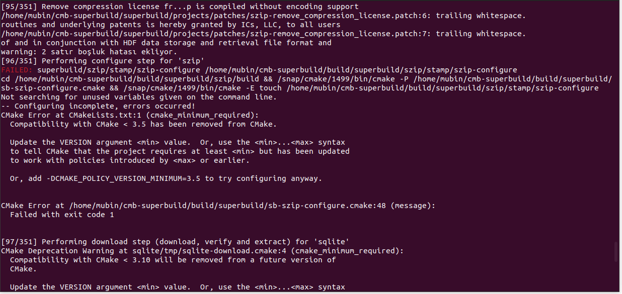 Hello. I am trying to install CMB Superbuilder on Ubuntu 22.04 to use it with the RGG plugin for reactor core design, but I am new to Linux and I am encountering some compilation errors. How can I resolve it?