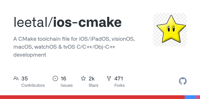 Uses the ios-cmake toolchain with the VisionOS Simulator flag