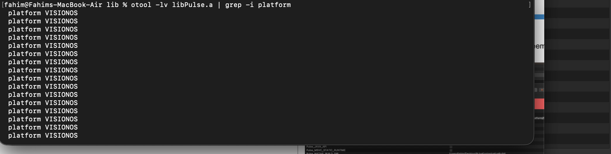 Error: Building for âvisionOS-simulatorâ, but linking in object file (/Users/fahim/Desktop/Academy Projects/RealisticALSTraining/RealisticALSTraining/Pulse/Libs/Simulator/libPulse.a2) built for âvisionOSâ